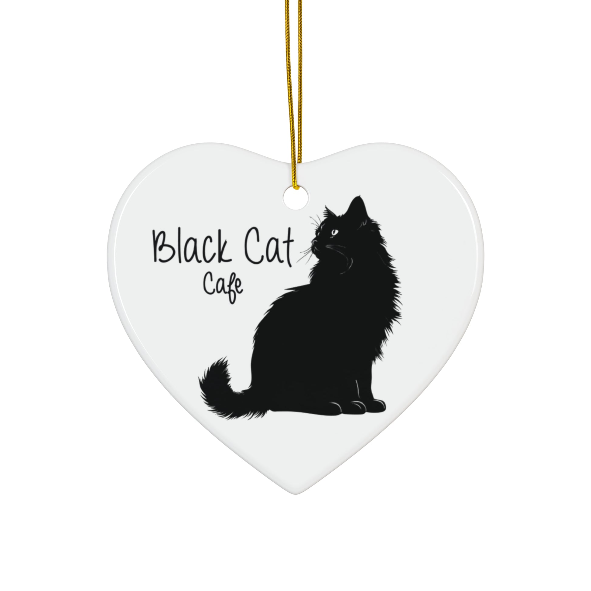 Black Cat Cafe Ceramic Ornament — Heart-Shaped Christmas Tree Decoration