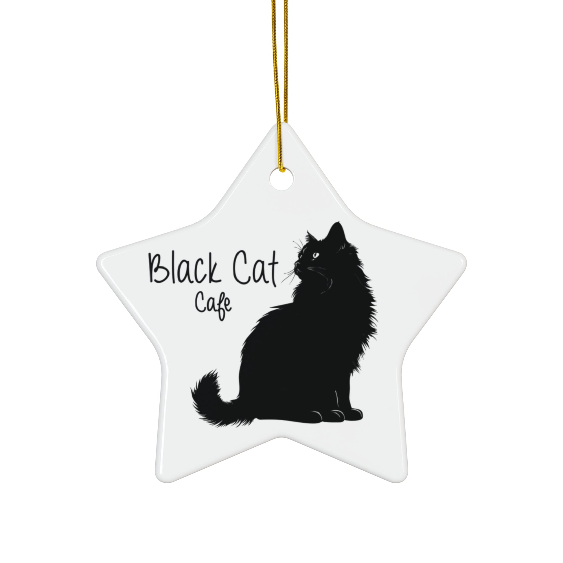 Ceramic Ornament - 'Black Cat Café' Decorative Star Ornament, Cat Lover Gift